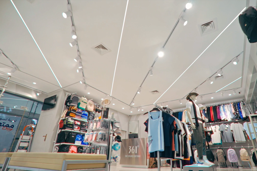 In the atrium and corridors, downlights and light strips create a bright, spacious, and welcoming flow for shoppers. In the entertainment zone, highbay fixtures meet the high-ceiling brightness requirements, providing a safe, well-lit environment for enjoyable leisure. And in retail stores, track spotlights accentuate every product with precision, highlighting details and elevating the shopping experience.